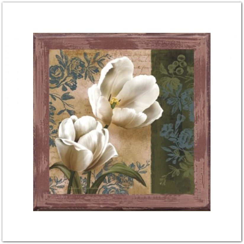 Kezdőlap » Lakásdekoráció » Falikép, táblakép, ajtótábla » Táblaképek lakásba » Tulipános-virágos vintázs fa táblakép, falikép antikolt kerettel, 20x20cm